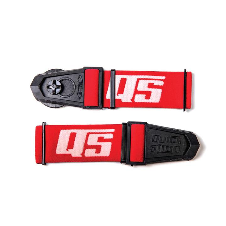 The Quick Strap goggle system allows you to quickly and easily remove your goggles with one hand. When youre taking a break, simply pull from the Velcro and let your goggles hang by the side of your helmet. This keeps goggles safe and clear of fogging. When youre ready to go, just grab the tab, pull the goggles over the eyes, and attach back to the Velcro patch on helmet. Quick Straps are perfect for off-road, MX, UTV, ATV, and snowmobile.