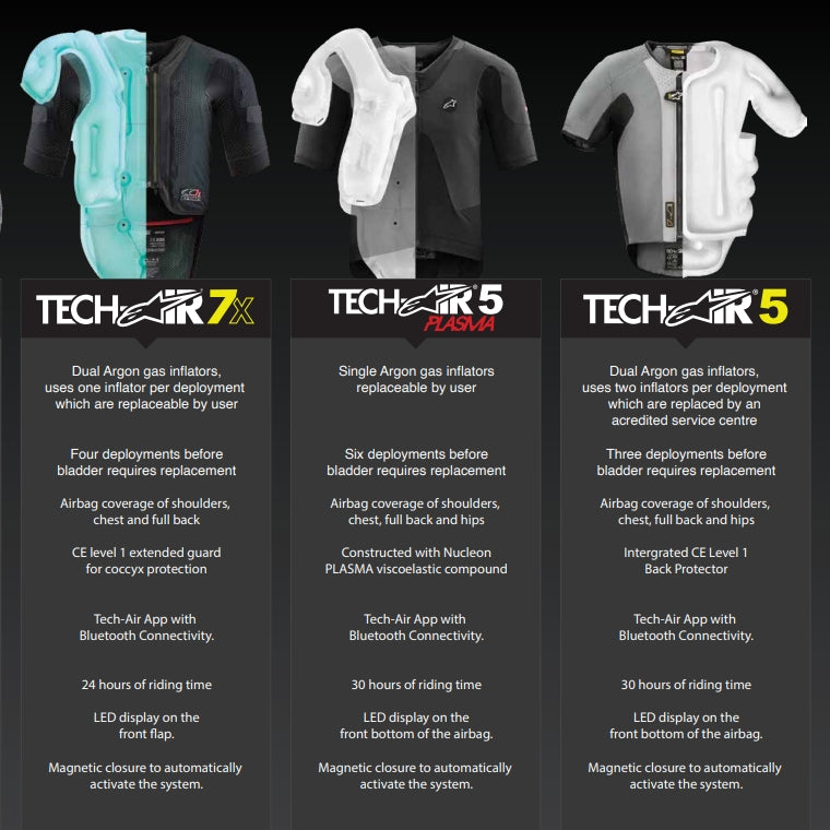 With a newly developed algorithm supporting three distinct Riding Modes—STREET, OFF-ROAD, and RACE, the Tech-Air 5 Plasma is a single-charge deployment Airbag System with a user-replaceable gas canister for continued protection on every ride.