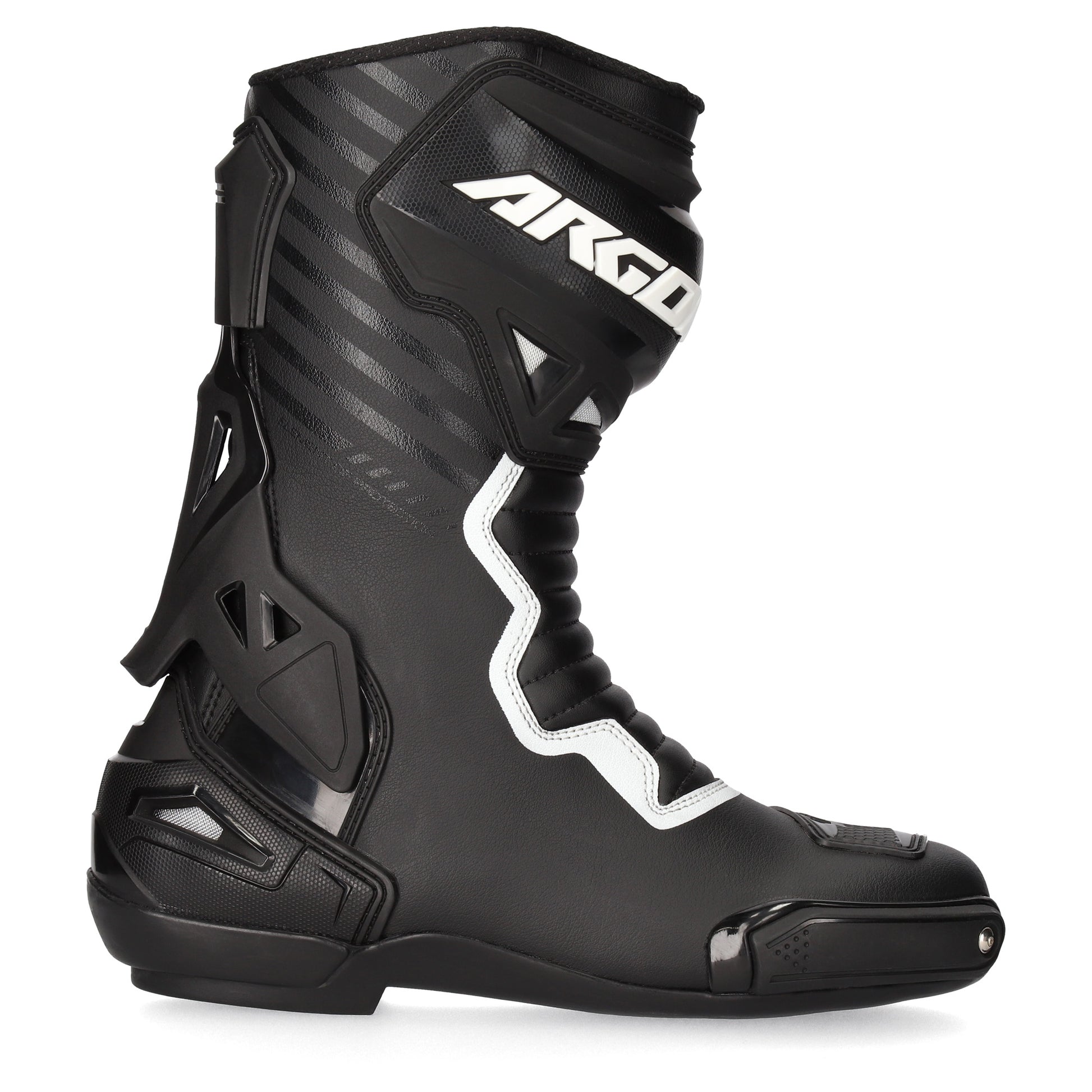 A race boot needs to be cool, protective and comfortable so you can focus on digging into the corners and not your suit digging into your leg. Our flagship race boot, the Pursuit, provides full coverage from upper shin to the toe; TPU shin, heel and ankle protection, reinforced heel, toe slider and pivoting back support exo-skeleton. Heel, shin and inner ankle vents keep the air flowing while the low profile high-grip anti-shock rubber sole keeps your feet on those pegs.