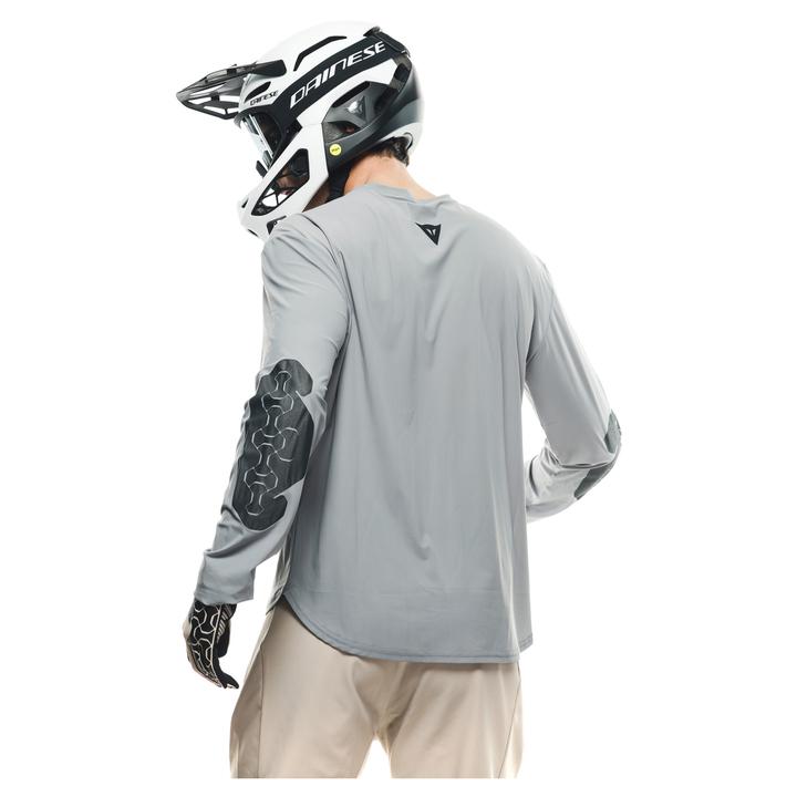 The Dainese HGR line is designed to offer every rider the highest levels of stability, resistance and protection. The long-sleeved HGR Jersey LS combines abrasion and pilling resistance with extreme lightness and breathability. The Sensitive fabric construction offers greater durability with minimal thickness and a pleasant softness to the touch, as well as providing UV protection on the sunniest of days. The protection and resistance of the jersey are enhanced by a resistant auxetic pattern at the elbows, more exposed to possible friction in case of a fall or slide. The crew neck cut makes it comfortable and ideal in all situations.