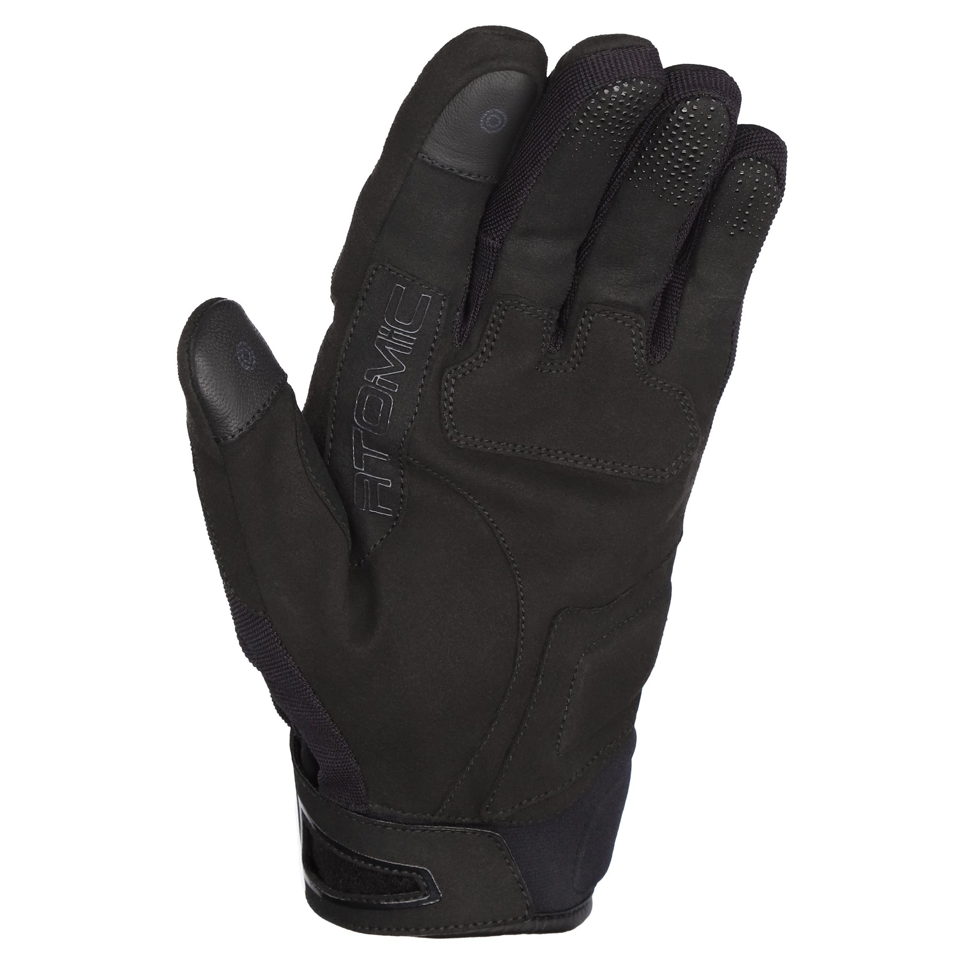 The Atomic gloves are a lightweight winter sports touring option with a waterproof liner and brushed fur inner. Made from lightweight Amara, a man-made synthetic suede, which has excellent durability, high tear and tensile strength and good breathability. Amara is used on the palm and upper for abrasion resistance. The hard shell knuckles protection is hidden under fourway stretch fabric for a clean aesthetic, which is extended across the glove with a stretch neoprene opening for ease of use. EVA rubber padding on the top of the fingers helps to protect the fingers from light impacts while riding.