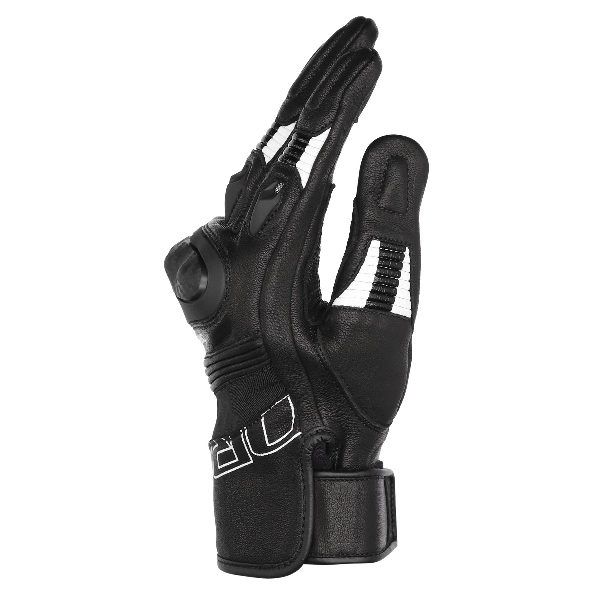 A sporty summer glove, the Torque short cuff glove is a full leather glove with finger and knuckle ventilation for hot days on the bike. Constructed of drum dyed goat leather on the palm and outer, the drum dye process softens the already soft goat leather for a supple feel and minimal break in period. The palm is reinforced with digital leather and has a leather and the ventilated TPU knuckle protector has a carbon fibre finish, while TPU finger protectors have silver mesh panels for a unique look. SuperFabric, a man-made highly abrasion resistant material with properties similar to leather, features as a palm slider to help the hand slide rather than grip in the event of a crash.