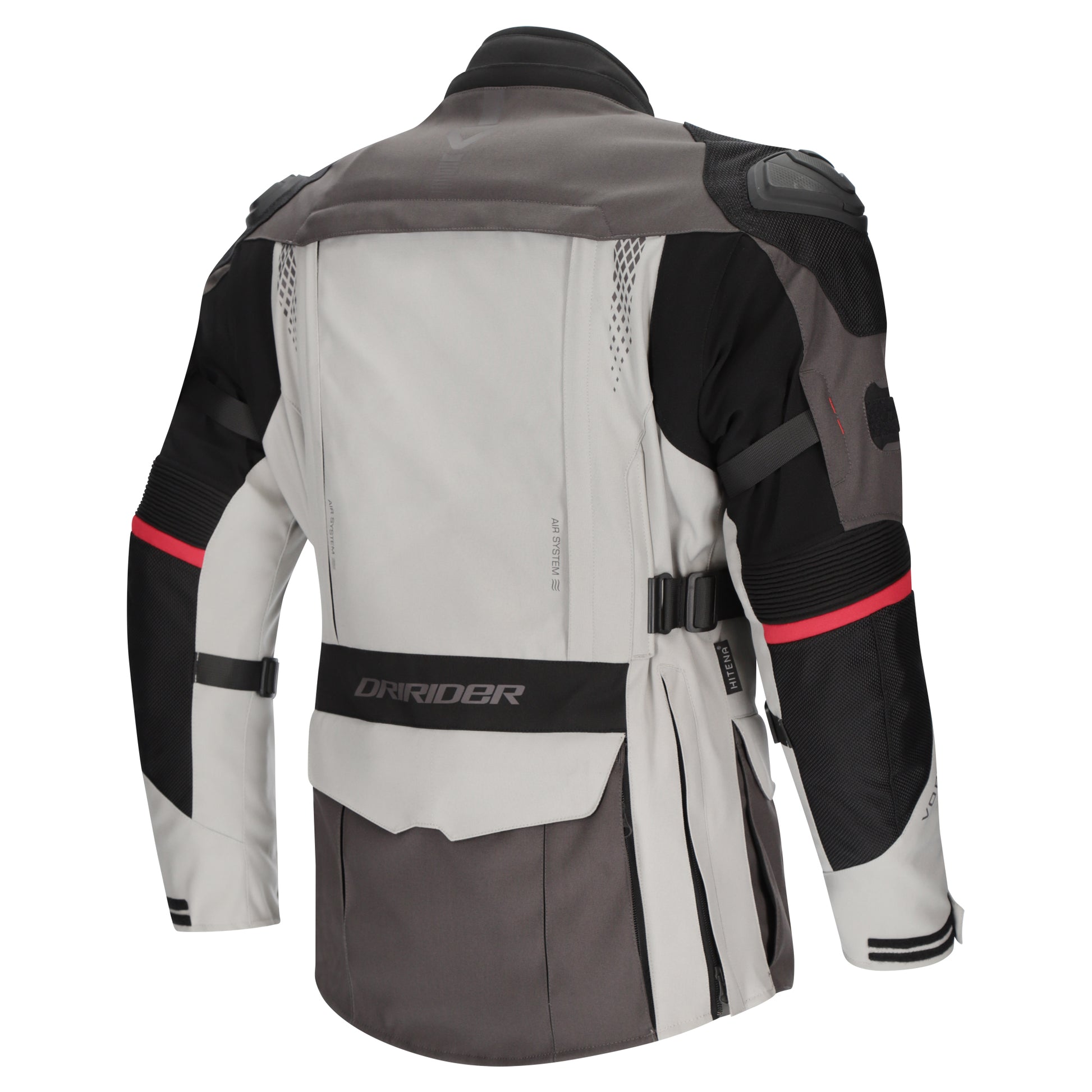 Constructed of 450D stretch polyesters with a PU coating, the outer fabric is not only abrasion resistant but also water resistant. Hitena ballistic fabric is used in all the high impact areas for additional strength, supported by hard shoulder cups and X-Halo CE Level 2 armour to protect the shoulders and elbows. ISO4916 safety stitching holds the jacket together in the event of a crash.