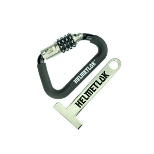 Helmet locks are sometimes not included as standard equipment anymore with new motorcycles, which makes it a chore to have to carry your helmet around with you when you park. But it doesn't have to be that way with the HelmetLok and T bar combo. The HelmetLok is a carabiner-style lock with a 4-digit programmable locking mechanism so you can safely lock your helmet to your bike. Plus, it's small and compact enough to fit in your pocket for convenience!
