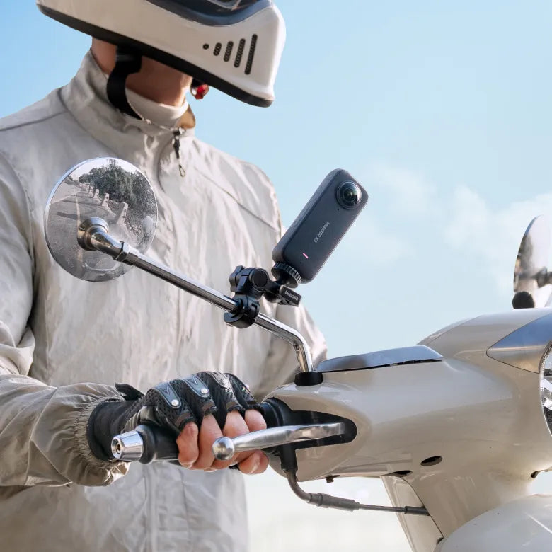 Insta360 Rear View Mirror Mn Acepro/X3Easily mount on scooters and motorcycles.Capture epic third-person POV shots on your road trips.Fits handlebars with the diameter range of 6-15mm.Fully adjustable clamp design.
