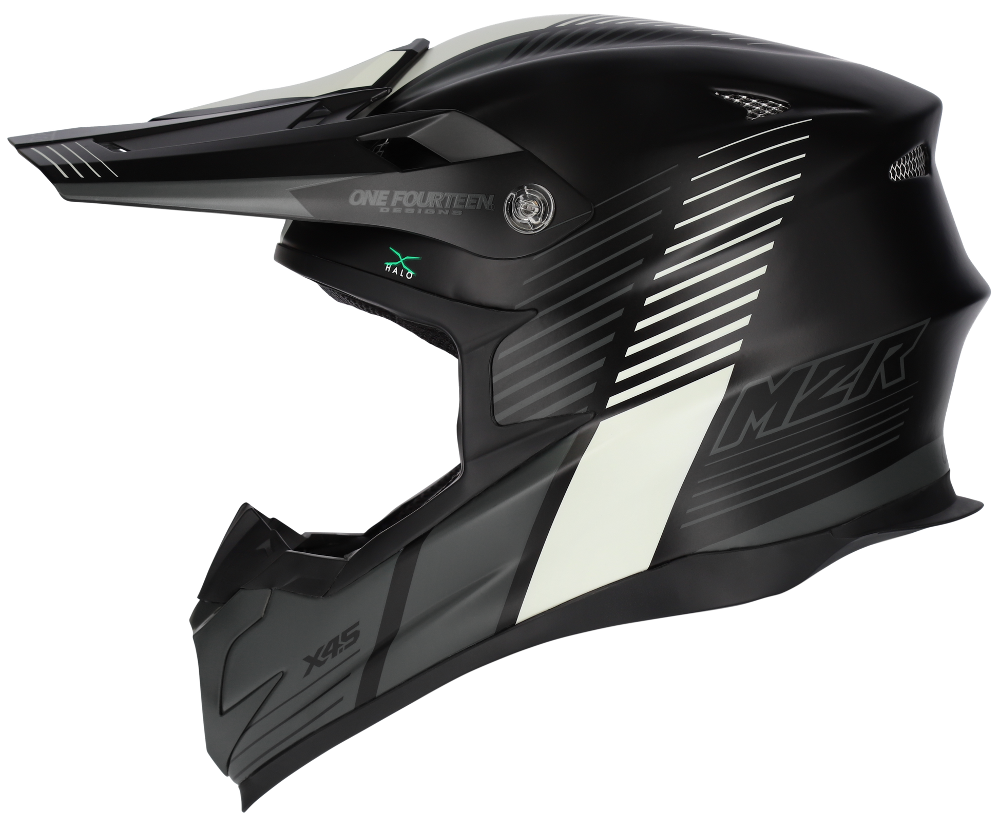 The M2R X4.5 Helmet is the ultimate off-road lightweight performance helmet that is ready and MADE2RACE! Made for all riders wanting all over protection, the X4.5 helmet features a lightweight MIT+ Technology shell that is made of hand-crafted carbon, Kevlar and a fibreglass multilayer construction, as well as a dual layer EPS fully removable impact liner, all for an unbeatable price. The X4.5 helmet also features the M2R unique X-HALO Impact Protection Shield offering up to 12% additional protection in the critical halo position area for your peace of mind.