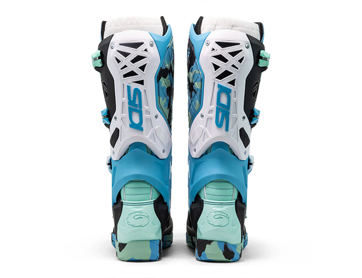 All the support, control and protection without the extra burden. Crossair X delivers an outstanding level of safety, with high-density impact protectors covering the entire boot in a light and flexible structure engineered to perform. The sole, powered by Materiis compound, has been developed for the control and durability needed in a Supercross championship: the result is an endless level of total grip to tackle every circuit. Internally, a fiberglass exoskeleton provides support during jump landing, and a 3-point anti-hyper-flexion system protects from dangerous movements.